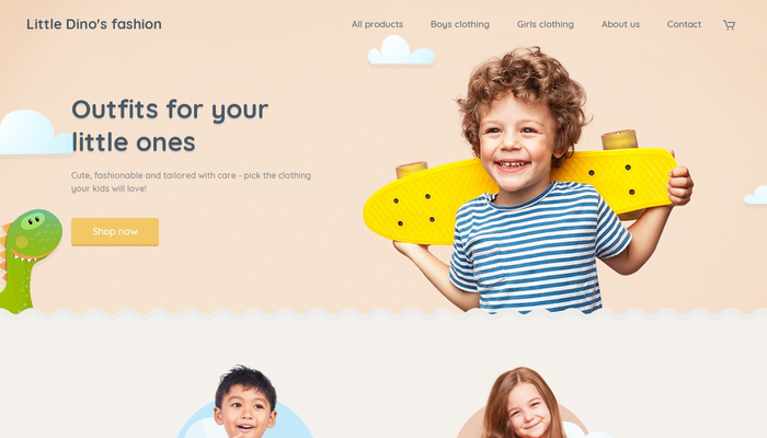 Sell the wonderful kids clothing you sew and showcase your work online! Perfect template for your online store with clothing or accessories. Popular products, cute design and easy check-out process will help your e-shop shine.
