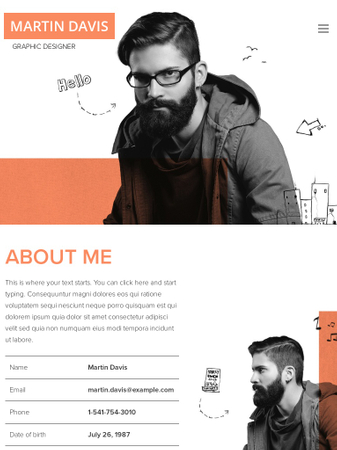 Are you looking for a template for your online CV or portfolio? This design is made for you. Just add your skills, experience and examples of your work and your brand new website is ready.